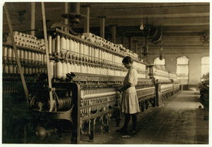 Charlie Foster has a steady job in the Merrimack Mills. School Record says he is now ten years old. His father told me that he could not read, and still he is putting him into the mill. See Hine report. Location: Huntsville, Alabama.
