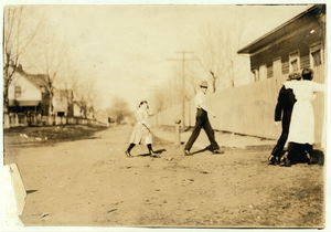 Group of some of the youngest workers in the Merrimack Mills. Everyone (except the boy behind the fence) has a steady job in the Merrimack Mills. See Hine report. Location: Huntsville, Alabama.