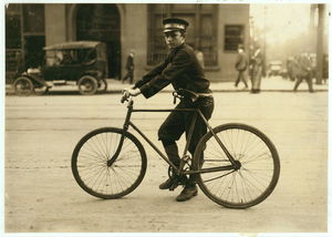 A typical messenger boy in New Orleans. The telegraph companies are trying to obey the law, and few violations occur. See Hine report on Messengers. Location: New Orleans, Louisiana.