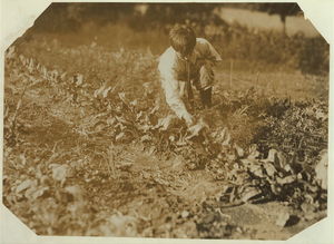 Work that Educates. Weeding with his father, John Spargo. Bennington, Vermont, August 1914. Location: Bennington, Vermont.