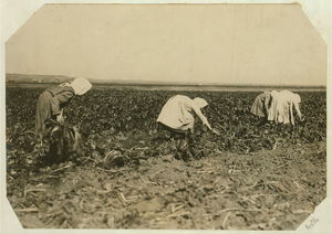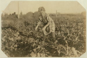 Nine-year old Pauline Reiber topping beets, a dangerous and hard job for such a child. Location: Sterling vicinity, Colorado / Photo by Hine, Oct. 23/15.