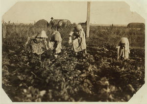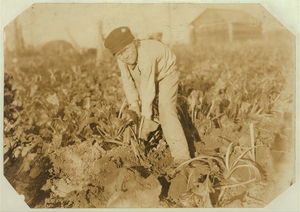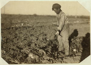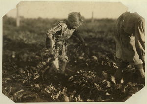 (See label 4010) Eight-year-old boy tugging at the beets. There is a great deal of physical strain in this work. See Hine report. Location: Sterling vicinity, Colorado / Photo by Hine., Oct. 22/15.