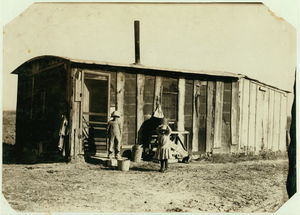 Shack in which the Reibers live, 10 x 15 ft. with a small shed attached. See other photos. Location: Sterling vicinity, Colorado.