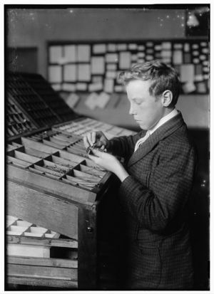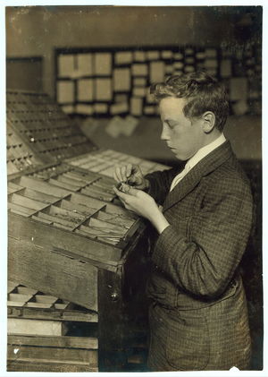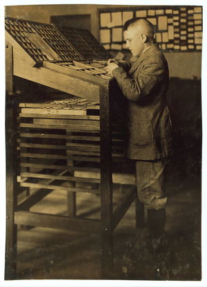 Typesetting. See 4168. Location: Fall River, Massachusetts. / Lewis W. Hine.