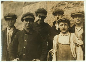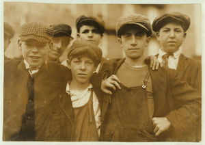 Drop-wire boys. Granite Mill #2. Noon. Location: Fall River, Massachusetts / Lewis W. Hine.