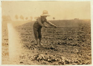 Conrad Elrod, R 3, hoeing strawberries. Location: Warren County--Plano, Kentucky / Lewis W. Hine.