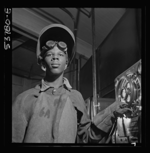 NYA (National Youth Administration) Center, Brooklyn, New York. A Negro who is receiving training in machine shop practice shown in his welder's outfit