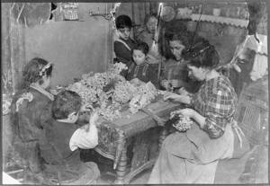 Artificial flower making at 8 cents a gross. Youngest child working is 5 years old. Location: New York, New York (State)