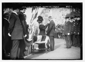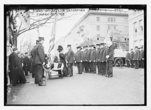 Mrs. McClellan, wife of Mayor, decorating honor men of N.Y. Fire Dept., New York