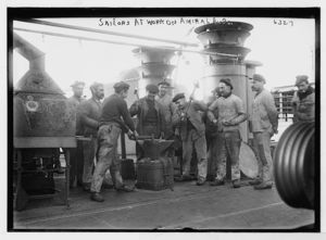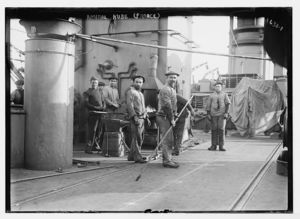 Deck hands on Amiral Aube, French ship