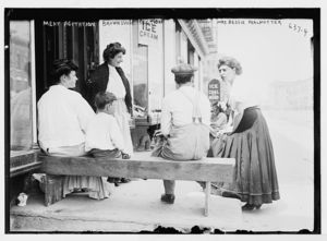 Mrs. Bessie Perlmutter and others outside store, meat agitation, New York, Brownsville Section