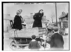 Suffragette speaking from cart, London