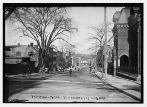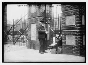 Beggar, holding pipe, with dog, Hoboken, N.J.