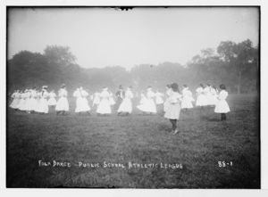 Girls of Public School Athletic League folk dance in Central Park, New York