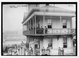 Cardinal Logue reviewing fire boats, New York