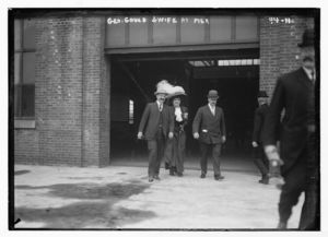 Geo. Gould and wife at boat pier, New York