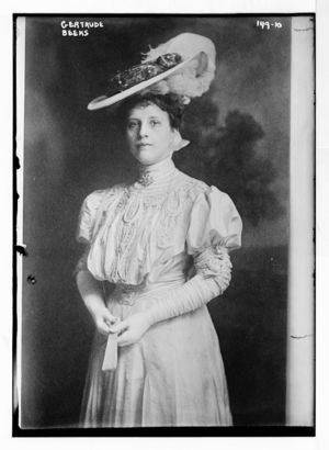 Gertrude Beeks, standing three-quarters