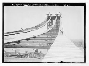 Temporary foot path atop Manhattan Bridge, New York
