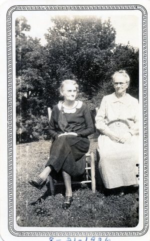 Alice Hedger Moore and her sister Ruth Hedger Maurer on the Moore Homestead