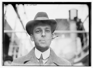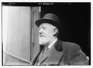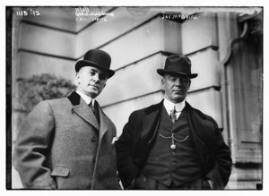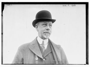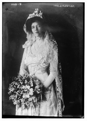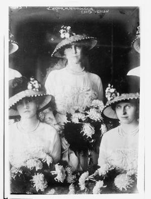 Mrs. Nellie van Slingerland holding banner of Joan of Arc Suffrage League