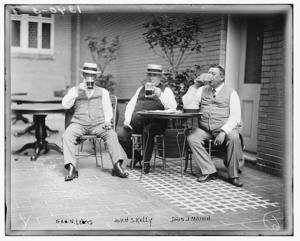 Geo. N. Lewis, John S. Kelly, John J. Mahon (drinking from mugs)