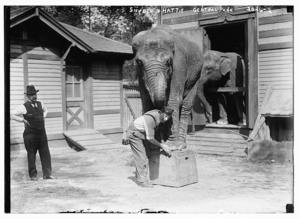 Hattie and Snyder, Central Park. Profile views of both Snyder and the elephant.
