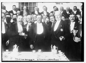 T.R. Theodore Roosevelt at the banquet-City Hall, Copenhagen. Group of men all in formal dress.