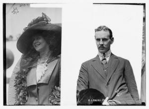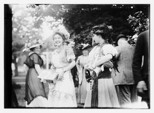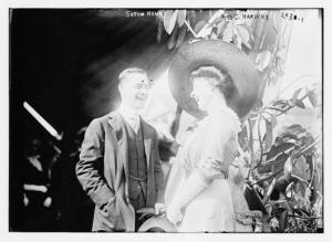 Seton Henry and Miss C. Harding. Three-quarter view, standing and talking to each other.