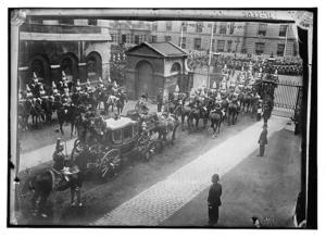 The funeral procession of the late King Edward VII. Queen Mary's State carriage.