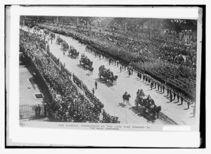 The funeral procession of the Late King Edward VII. Coffin on gun-carriage.