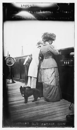 Mrs. Roosevelt and Ethel and "Bongo" on bridge of Kaiserine Aug. Victoria
