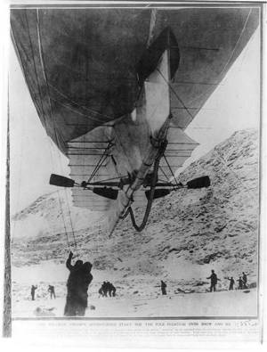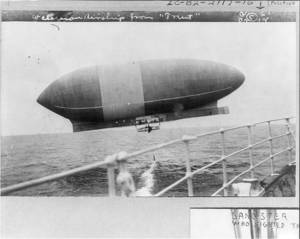 Wellman airship "America" viewed from the RMS TRENT, shown dragging anchor in water