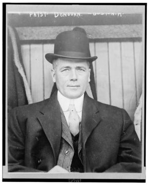 Patrick Joseph "Patsy" Donovan, Boston Red Sox baseball manager, head-and-shoulders portrait, facing front, wearing coat and derby