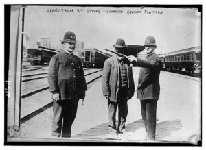 Grand Trunk R'y i.e., Railway strike- guarding station platform