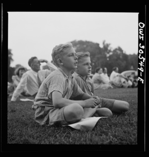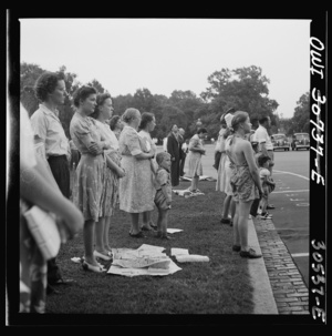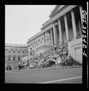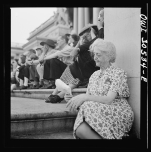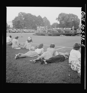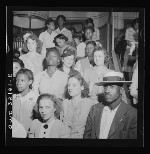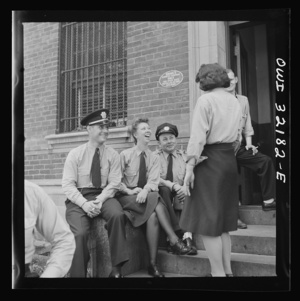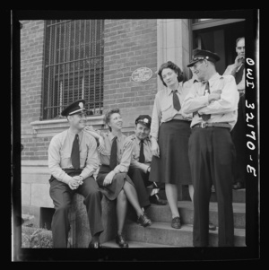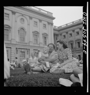 Arlington, Virginia. Girls entertaining their guests in one of the two card rooms, at a residence for the women who work in the U.S. government for the duration of the war. More privacy is afforded here than in the main lounge