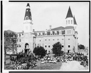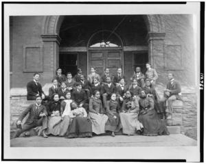 Junior normal class of Fisk University, Nashville, Tennessee, seated on steps outside of building
