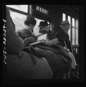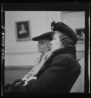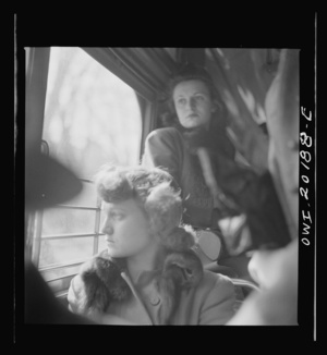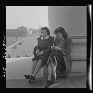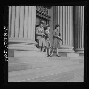 Washington, D.C. Girls employed by the U.S. Office for Emergency Management (OEM) coming out of church