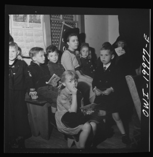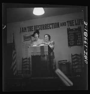 Washington, D.C. Sunday school children and teacher listening to services at the First Wesleyan Methodist Church