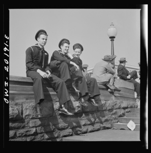 Washington, D.C. Sailors and civilians sitting on the Captiol grounds