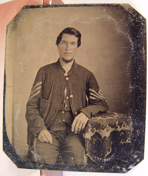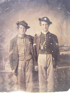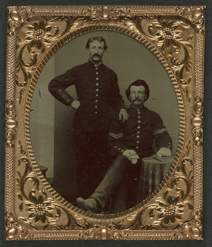 Two unidentified soldiers in Union uniforms, one in corporal's uniform and dress gloves