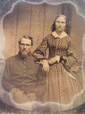 Unidentified soldier in Union uniform with unidentified woman in dress
