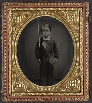 Unidentified soldier in Union sergeant's uniform with musket and sword