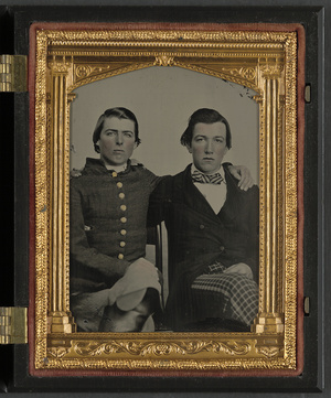 Unidentified soldier in Confederate uniform and unidentified man, possibly brothers