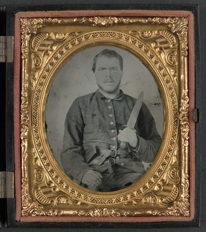 Brothers Private Thomas D. Hilliard and Corporal John Hilliard of Co. C, 12th North Carolina Infantry Regiment, in uniform with Bowie knives
