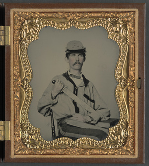 Unidentified soldier in Union uniform with teamster's bullwhip