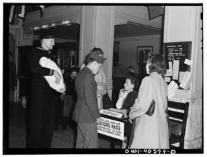 Washington, D.C. Hugh and Lynn Massman at the United Nations service center. Just arrived in Washington, they are told they can leave their baby in the nursery while they see the town and find a place to live