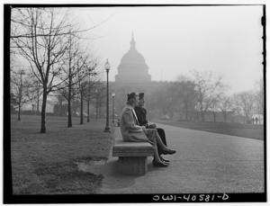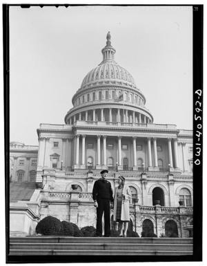Washington, D.C. Hugh and Lynn Massman sightseeing on their first day in Washington. Their baby is being taken care of in the nursery at the United Nations Service Center