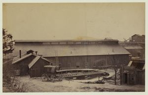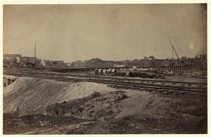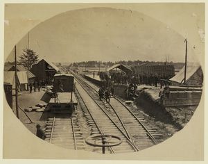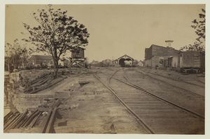 Eastern view of round house and depot, Orange & Alexandria Railroad