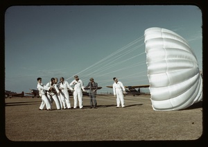 Instructor explaining the operation of the parachute to students, Meacham Field, Fort Worth, Tex.