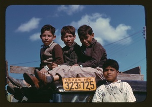 Boys sitting on truck parked at the FSA ... labor camp, Robstown, Tex.